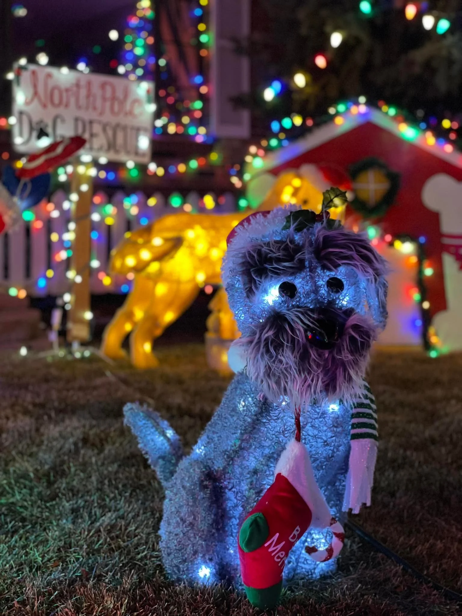 There are over 2,000 lights just in the two large pine trees! Including the house, back trees, fences, and front porch makes it over 13,000 lights. Now that’s a lot of testing and untangling!
